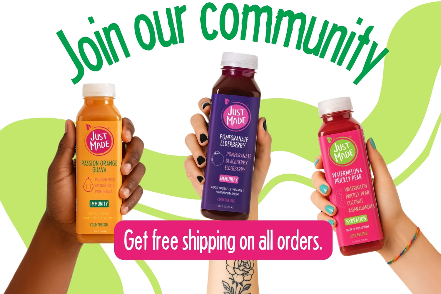 Just Made crafts cold-pressed juices, wellness shots and smoothie bowls from vibrant tropical fruits and functional ingredients, with no added sugar, preservatives, or shortcuts. Inspired by our Latin American roots and made with purpose, every bottle supports your health and the communities that grow our ingredients. We donate 5¢ from every bottle sold to support teachers in those farming communities. Real fruit. Real function. Made justly.